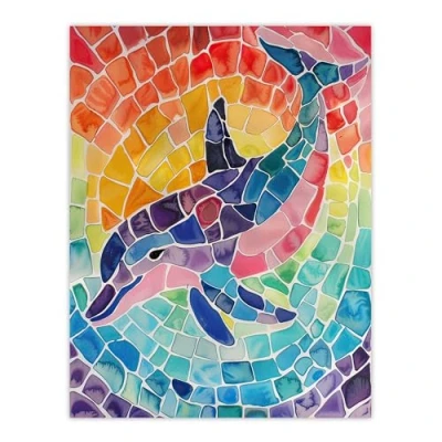 Artery8 Dolphin and Rainbow Mosaic Pattern Watercolour Kids Bedroom Nursery Extra Large XL Wall Art Poster Print