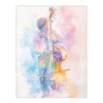 Artery8 Double Bassist Jazz Musician Light Watercolour Living Room Large Wall Art Poster Print Thick Paper 18X24 Inch