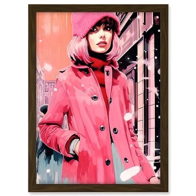 Artery8 Downtown Girl Woman in Retro Pink City Fashion Artwork Framed A3 Wall Art Print