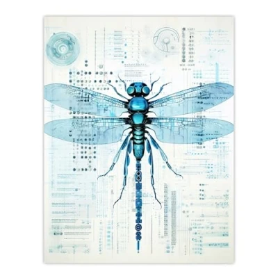 Artery8 Dragonfly Robot Hybrid Secret Military Weapon Schematic Blueprint Futuristic Complex Arcane Manuscript Gift For Him Man Cave Extra Large XL Wall Art Poster Print