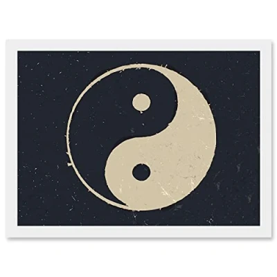 Artery8 Drawing Taoist Philosophy Yin Yang Black White Artwork Framed Wall Art Print A4