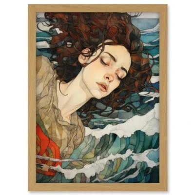 Artery8 Dreaming of the Sea Woman Sleeping Egon Schiele Style Watercolour Painting Red Brown Blue Carried by Waves Artwork Framed A3 Wall Art Print