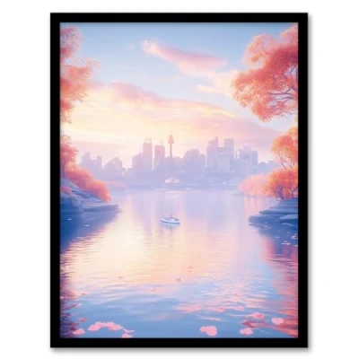 Artery8 Dreamy Autumn Sunrise Japanese Coastal Cityscape Living Room Artwork Framed Wall Art Print A4