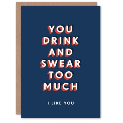 Artery8 Drink And Swear Too Much I Like You Funny For Him Birthday Card