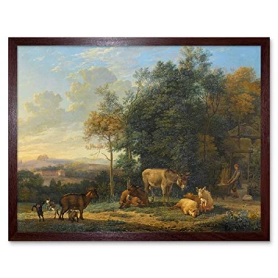 Artery8 Du Jardin Landscape Two Donkeys Goats Pigs Painting Art Print Framed Poster Wall Decor 12x16 inch
