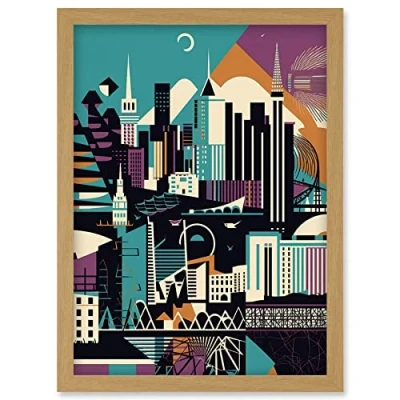 Artery8 Dundee City Modern Abstract Geometric Cityscape Artwork Framed Wall Art Print A4