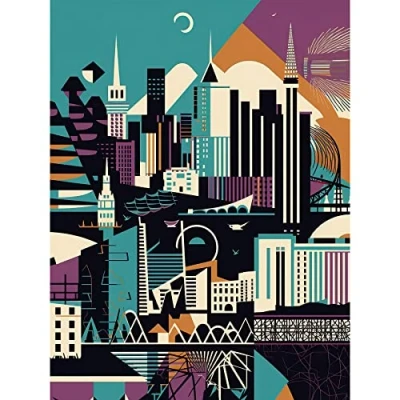 Artery8 Dundee City Modern Abstract Geometric Cityscape Extra Large XL Wall Art Poster Print
