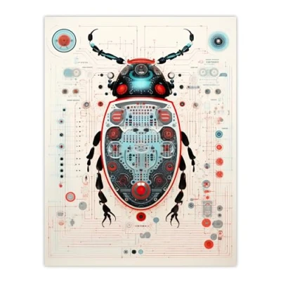Artery8 Dung Beetle Robot Hybrid Secret Military Schematic Blueprint Futuristic Complex Arcane Manuscript Gift For Him Man Cave Extra Large XL Wall Art Poster Print
