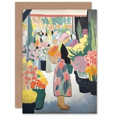 Artery8 Dutch Pastel Painting Flower Market for Wife Her Mum Sister Daughter Mom Gran Nan Birthday Thank You Congratulations Blank Art Greeting Card