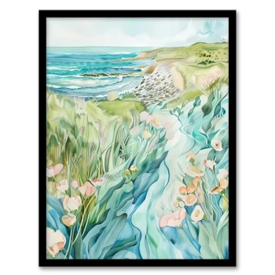 Artery8 East Riding English Coastal Scene Watercolour Living Room Artwork Framed Wall Art Print A4
