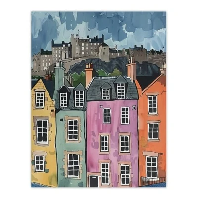Artery8 Edinburgh Castle Grassmarket Cityscape Scotland Living Room Large Wall Art Poster Print Thick Paper 18X24 Inch