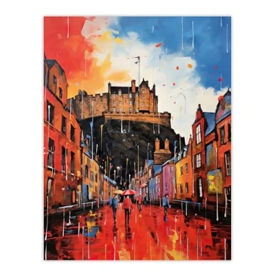 Artery8 Edinburgh Castle Vibrant Oil Painting Autumn Rain Cityscape Large Wall Art Poster Print Thick Paper 18X24 Inch