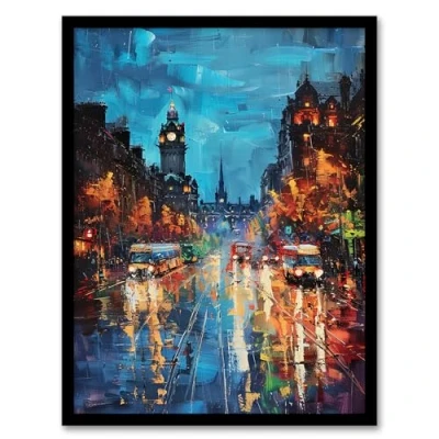 Artery8 Edinburgh Princes Street Cityscape Painting Living Room Artwork Framed Wall Art Print A4