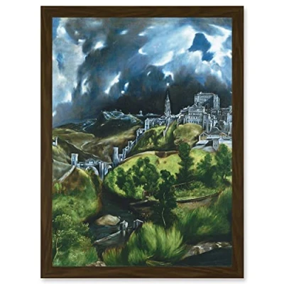 Artery8 El Greco View Of Toledo Spain Expressive Painting Artwork Framed Wall Art Print A4