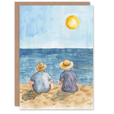 Artery8 Elderly Couple Sitting At The Beach Watercolour Blank For Him Or Her Art Birthday Card