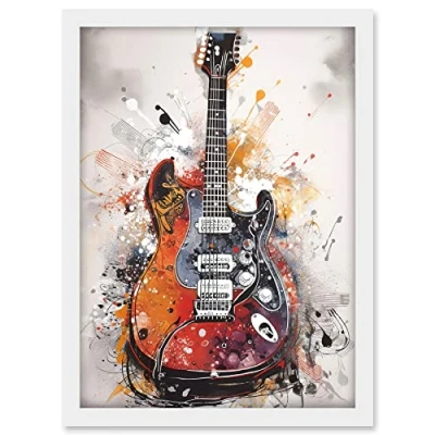 Artery8 Electric Mandolin Guitar Instrument Modern Watercolour Illustration Artwork Framed A3 Wall Art Print