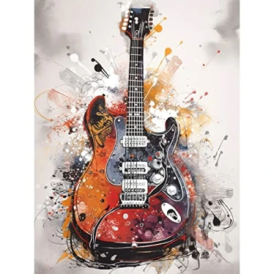 Artery8 Electric Mandolin Guitar Instrument Modern Watercolour Illustration Extra Large XL Wall Art Poster Print