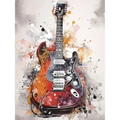 Artery8 Electric Mandolin Guitar Instrument Modern Watercolour Illustration Large Wall Art Poster Print Thick Paper 18X24 Inch