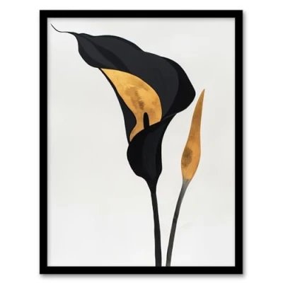 Artery8 Elegant Calla Lily Black Gold Floral Painting Living Room Artwork Framed Wall Art Print A4