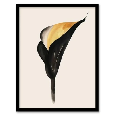 Artery8 Elegant Calla Lily Flower Bloom Black Gold Floral Bedroom Artwork Framed Wall Art Print A4
