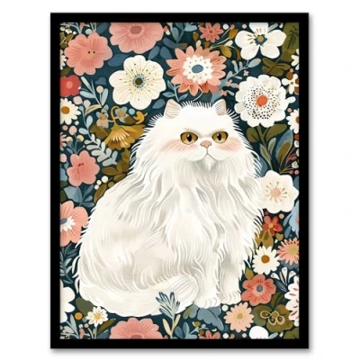 Artery8 Elegant Persian Cat Lover Flower Garden Portrait Living Room Artwork Framed Wall Art Print A4