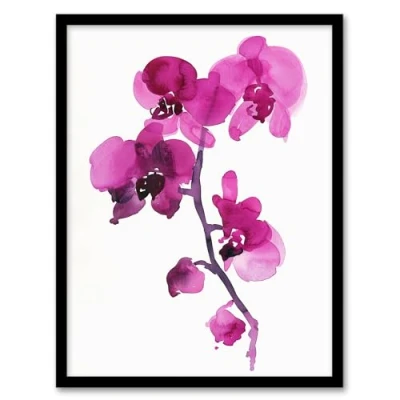 Artery8 Elegant Pink Orchid Abstract Floral Watercolour Living Room Artwork Framed Wall Art Print A4