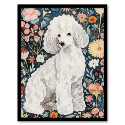 Artery8 Elegant Poodle Dog Lover Pet with Wildflowers Living Room Artwork Framed Wall Art Print A4
