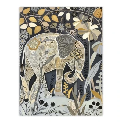 Artery8 Elephant Flowers Artwork Quirky Floral Folk Art Living Room Extra Large XL Wall Poster Print