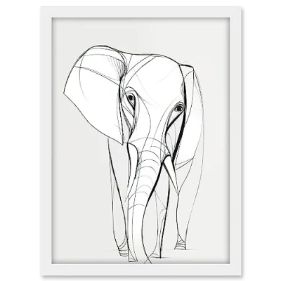 Artery8 Elephant Minimal Line Simple Drawing Illustration Artwork Framed A3 Wall Art Print