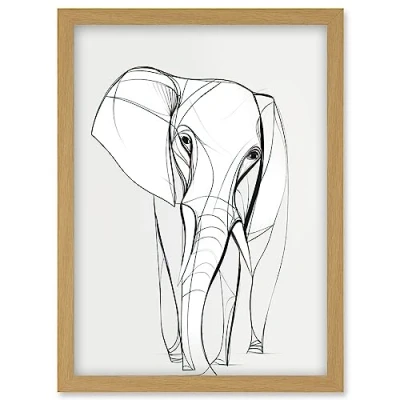 Artery8 Elephant Minimal Line Simple Drawing Illustration Artwork Framed Wall Art Print A4