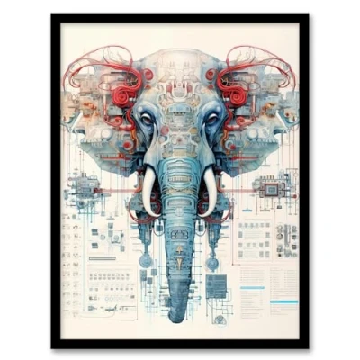Artery8 Elephant Robot Hybrid Schematic Blueprint Futuristic Secret Complex Arcane Manuscript Gift For Him Man Cave Artwork Framed Wall Art Print A4