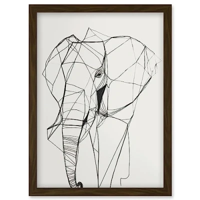 Artery8 Elephant Simple Polygon Line Drawing Illustration Artwork Framed Wall Art Print A4