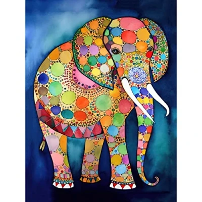 Artery8 Elephant With Patterns Folk Art Watercolour Painting Extra Large XL Wall Poster Print