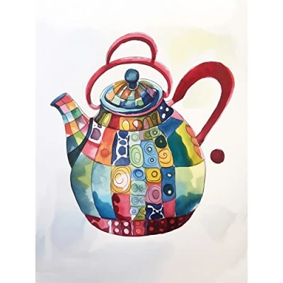 Artery8 Enamelled Patterned Tea Kettle Teapot Folk Art Watercolour Painting Large Wall Poster Print Thick Paper 18X24 Inch