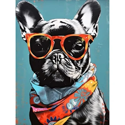 Artery8 English Bulldog Wearing Bandana and Sunglasses Large Wall Art Poster Print Thick Paper 18X24 Inch