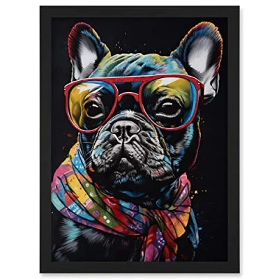 Artery8 English Bulldog Wearing Sunglasses and Bandana Artwork Framed A3 Wall Art Print