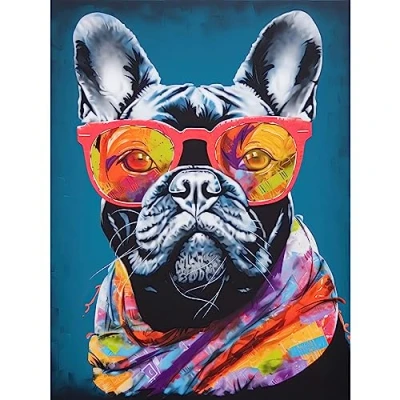 Artery8 English Bulldog with Neon Bandana and Sunglasses Large Wall Art Poster Print Thick Paper 18X24 Inch