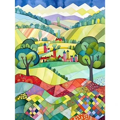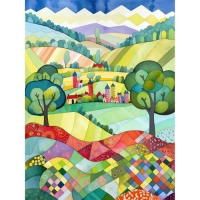 Artery8 English Countryside Rural Landscape Folk Art Watercolour Painting Extra Large XL Wall Poster Print