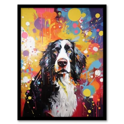 Artery8 English Springer Spaniel Dog Lover Gift Pet Portrait Colourful Vibrant Artwork Painting Framed Wall Art Print A4