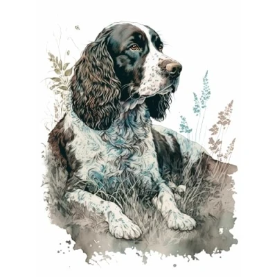 Artery8 English Springer Spaniel Dog Lying in Field Modern Watercolour Illustration Extra Large XL Wall Art Poster Print