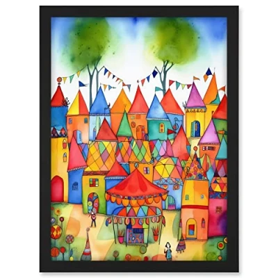 Artery8 English Village Fete Fair Folk Art Artwork Framed A3 Wall Print