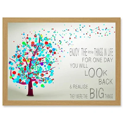 Artery8 Enjoy Little Things Life Bubble Tree Quote Typography A4 Artwork Framed Wall Art Print