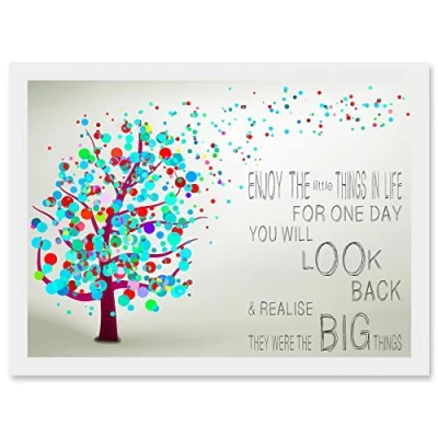 Artery8 Enjoy Little Things Life Bubble Tree Quote Typography A4 Artwork Framed Wall Art Print
