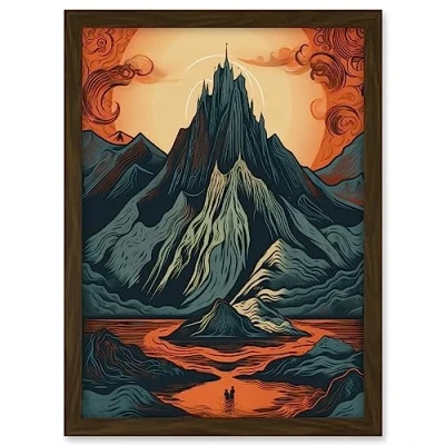 Artery8 Erebor The Lonely Mountain Landscape Illustration Artwork Framed A3 Wall Art Print