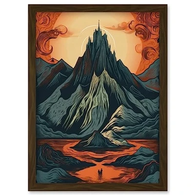 Artery8 Erebor The Lonely Mountain Landscape Illustration Artwork Framed Wall Art Print A4