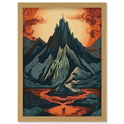 Artery8 Erebor The Lonely Mountain Landscape Illustration Artwork Framed Wall Art Print A4