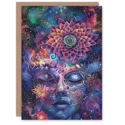 Artery8 Esoteric Universe Psychedelic Cosmic Portrait Blank For Him Or Her Art Birthday Card