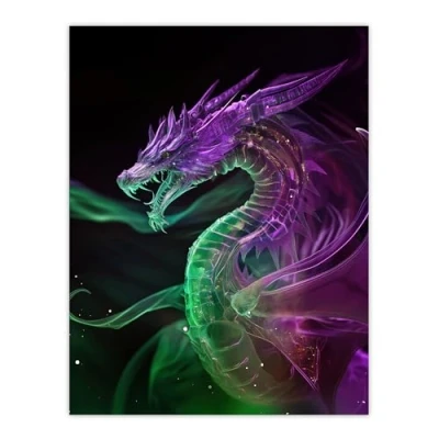 Artery8 Ethereal Dragon Purple Green Fantasy Art Living Room Extra Large XL Wall Poster Print