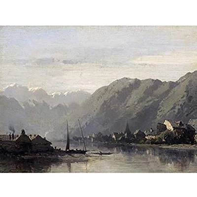 Artery8 Eugene Deshayes A Swiss Lake Painting Art Print Canvas Premium Wall Decor Poster Mural
