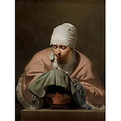 Artery8 Everdingen Young Woman Warming Hands Brazier Winter Art Print Canvas Premium Wall Decor Poster Mural